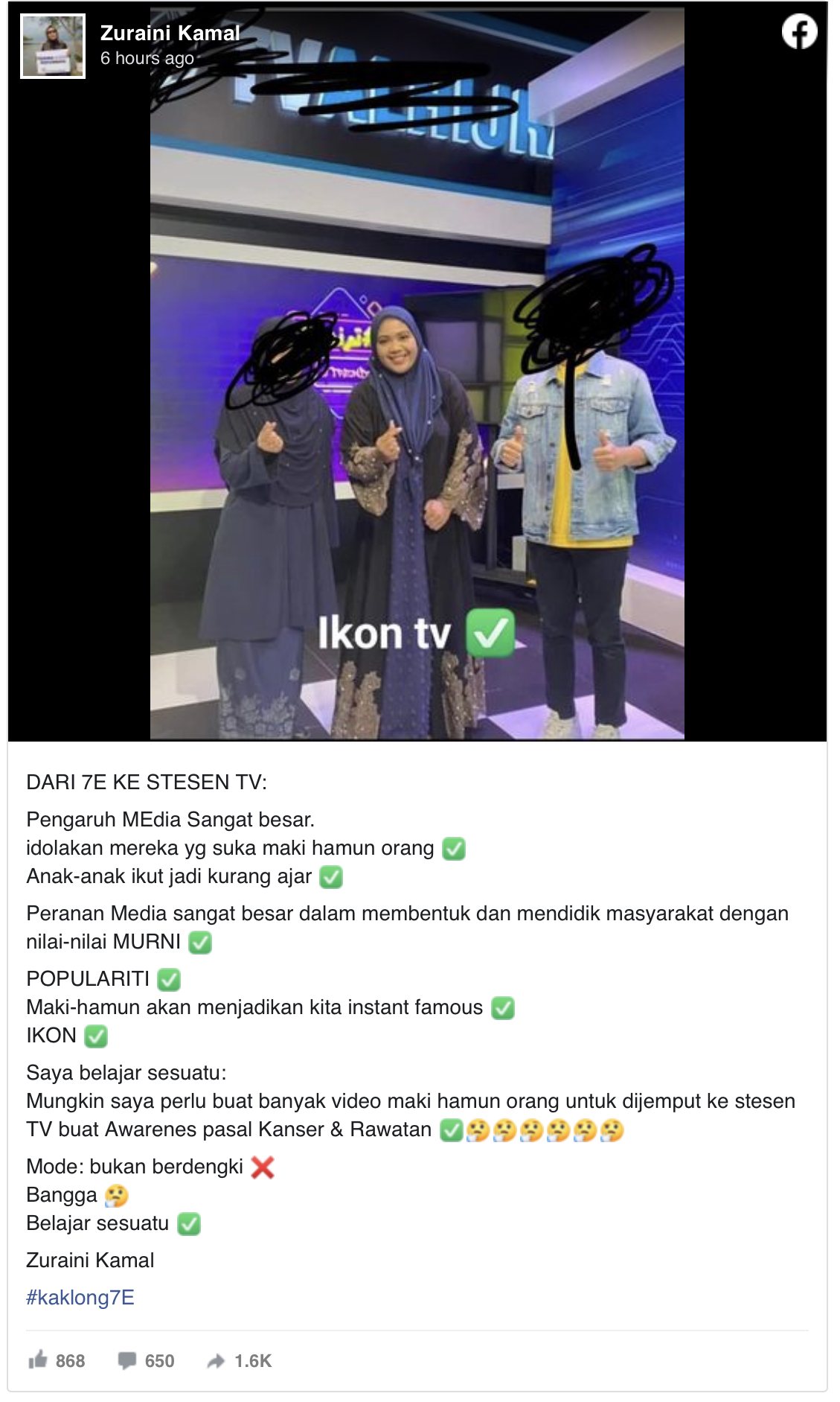 Lama menyepl, KakLong 7E atau nama sebenarnya Wan Noor Baizura kini kembali hangat diperkatakan selepas tular gambarnya menjadi tetamu jemputan di sebuah stesen TV Islamik.