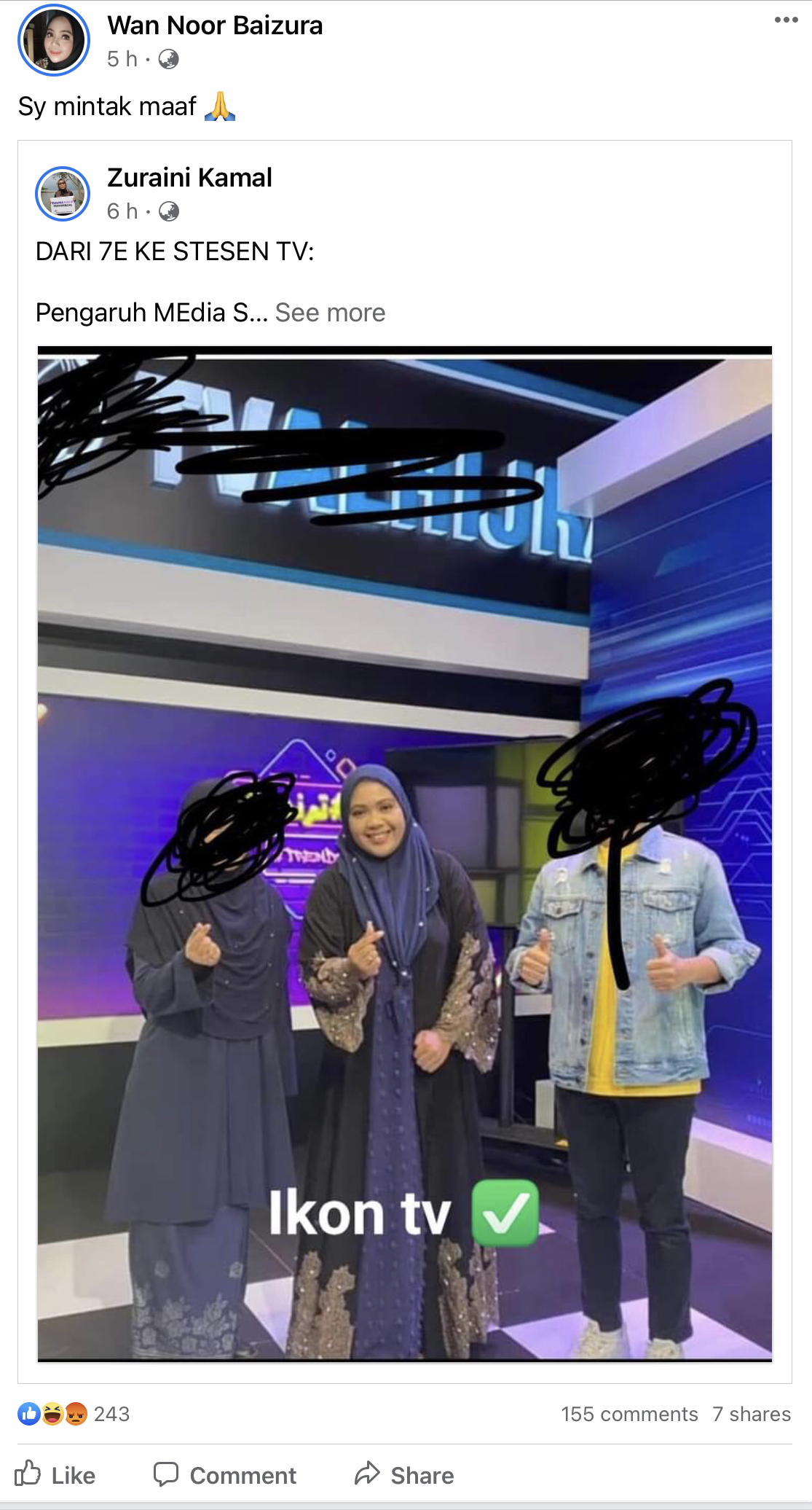 Melihat diruang soslal medla KakLong atau nama sebenar Wan Noor Baizura memuat naik permohonan maaf atas postlng terbabit.