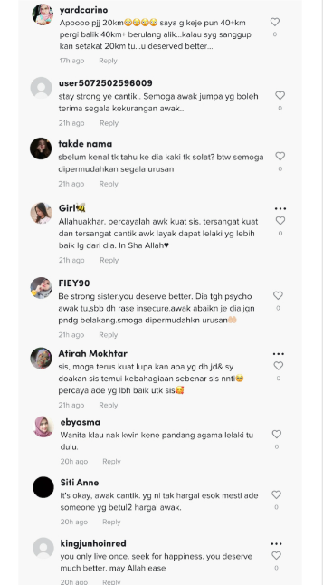 Menjengah ke ruangan komen, rata-rata warganet bersetuju dengan tindakan yang dilakukan oleh wanita itu dan mengatakan dia layak mendapatkan seseorang lebih baik dari sebelum ini.