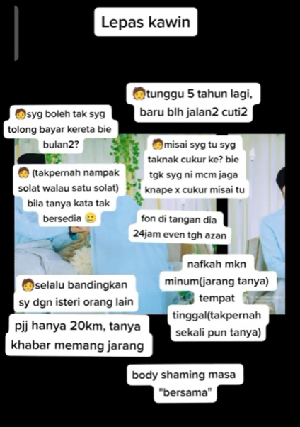 Video wanita ini telah mendapat respon netizen yang rata-rata risau dapat suami macam tu.